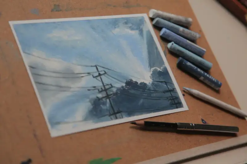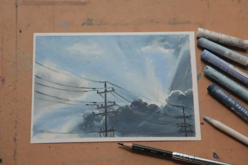 문교 오일파스텔로 햇빛이 들어오는 구름 하늘 그리기