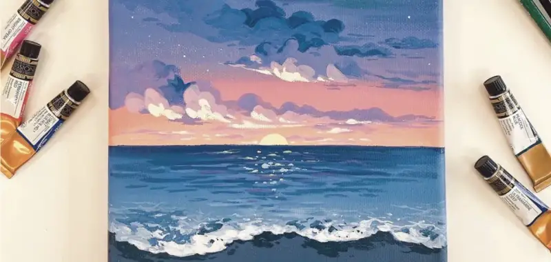 미션 매트화이트와 골드미션을 섞어서 그린 노을지는 바다
