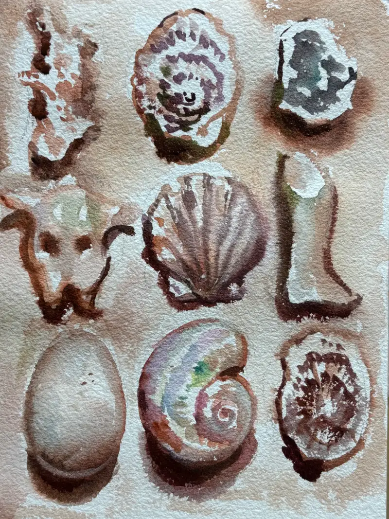 여러가지 산호조각 조개 껍질, 돌맹이, 동물의 뼈조각등을 그려보았습니다.