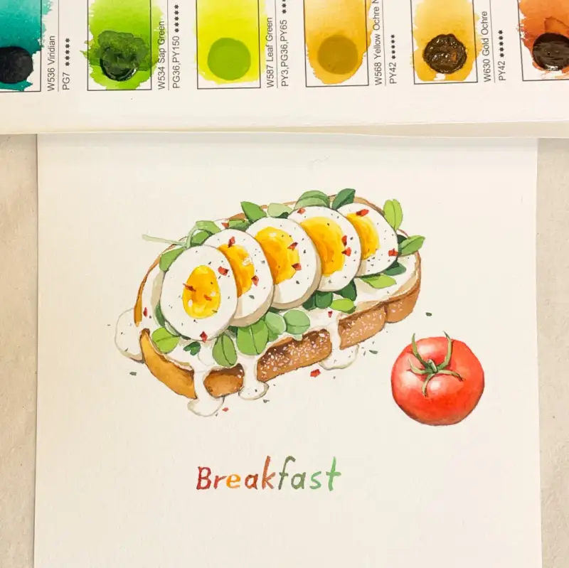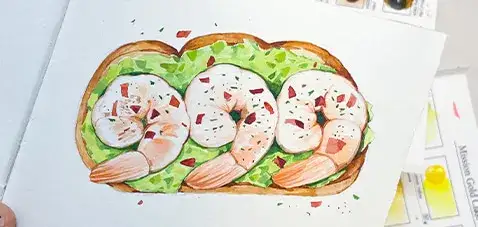 미젤로미션 골드클래스 도트 카드와 카디북에 그린 새우가 올라간 토스트🙂