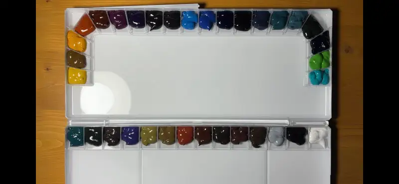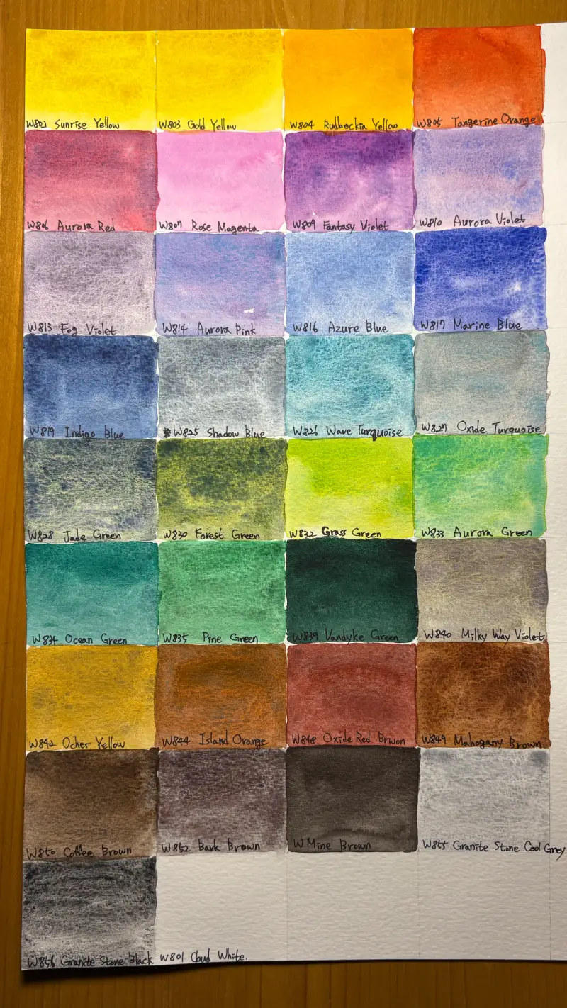 이번에 소개드릴 재료는 미젤로 미션 투르마린 투톤 그래뉼레이션 34색 수채화물감이에요!