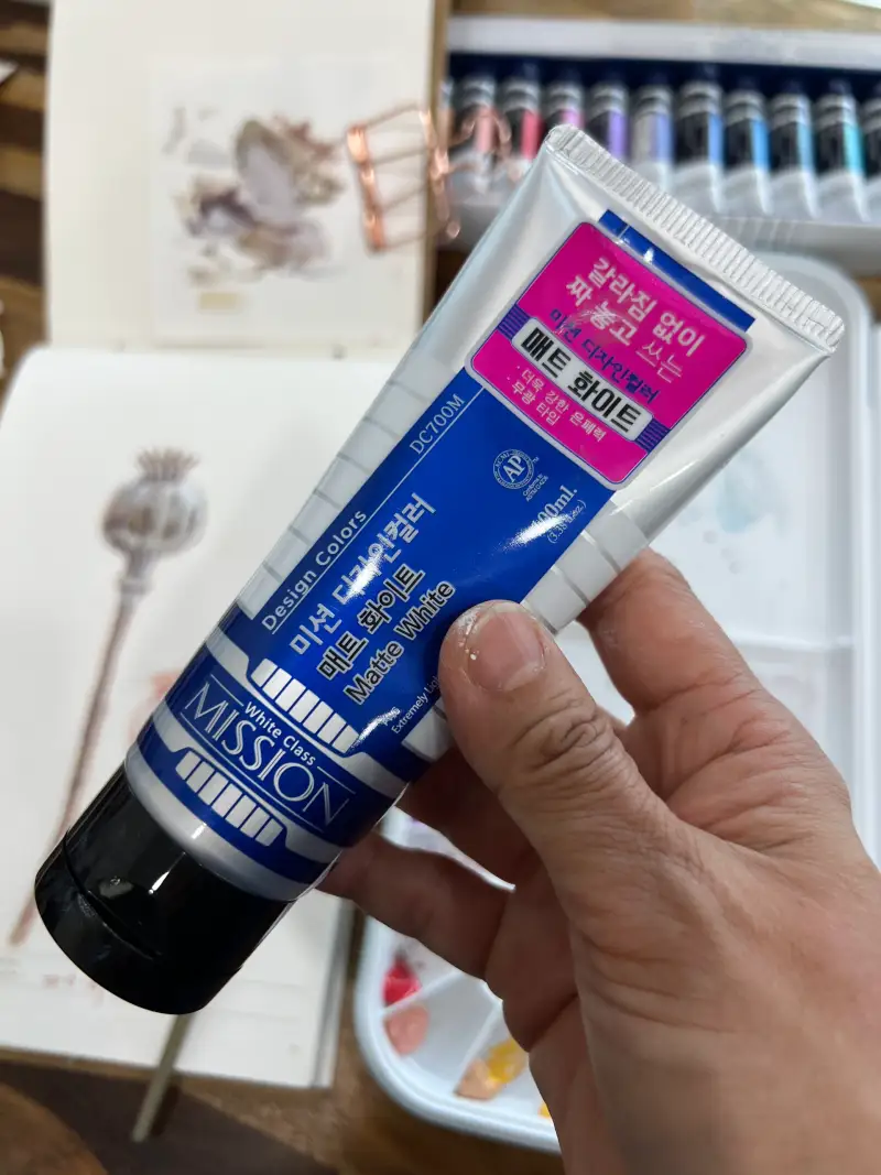 미젤로_미션 화이트 클래스 수채화물감 매트화이트 100ml.