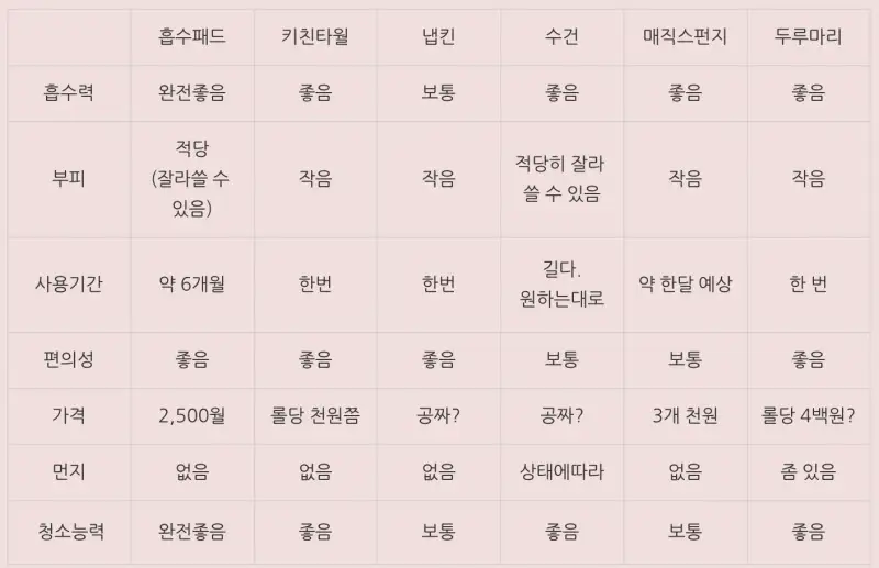 과 함께 비교하며 "물흡수 능력" 과 "청소 능력"을 확인해봤습니다.