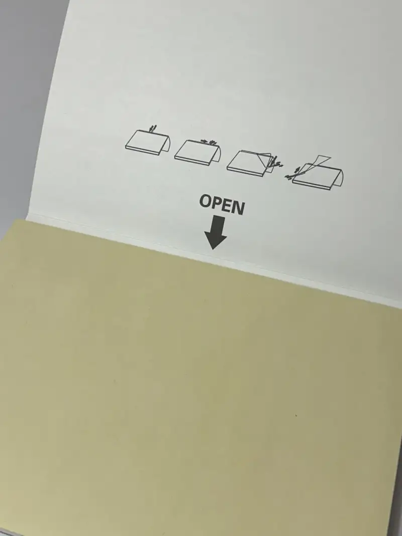 제품을 열면 어떻게 사용해야할지 모르는 사람들을 위한 설명 일러스트가 있었어요. 일러스트 순서대로 제일 윗면의 종이를 물감 나이프로 제거하고 사용하시면 됩니다.
