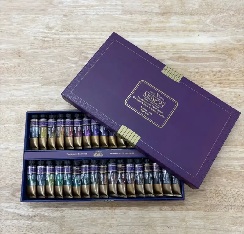 👉🏻미젤로의 투르마린 투톤 그래뉼레이션 물감은 독특한 색상분리 효과와 풍부한 질감으로 주목받고 있는 전문가용 수채화 물감이어요.