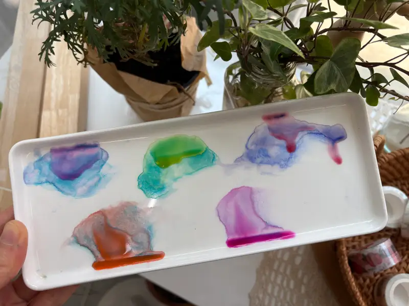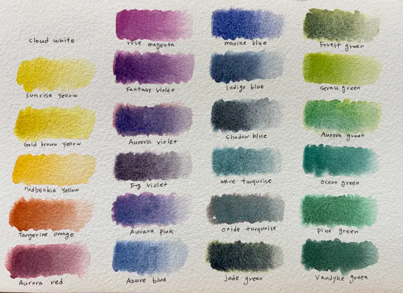 각 색상은 물과 혼합 시 두 가지 색상이 분리되어 나타나며 독특한 시각적 효과