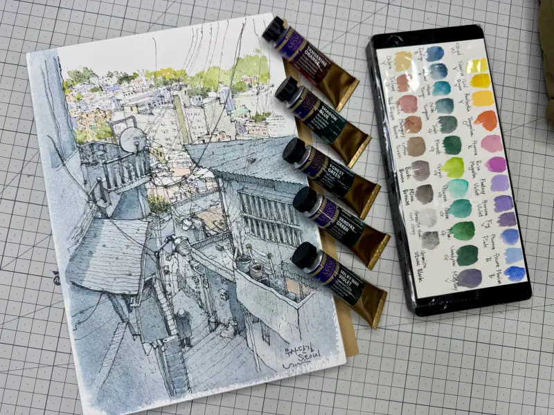 평소 저는 수채화물감으로 주로 그리는데 말로만 듣던 신제품 투르마린 그래뉼레이션 수채화 물감으로 즐겁게 그려봤습니다.