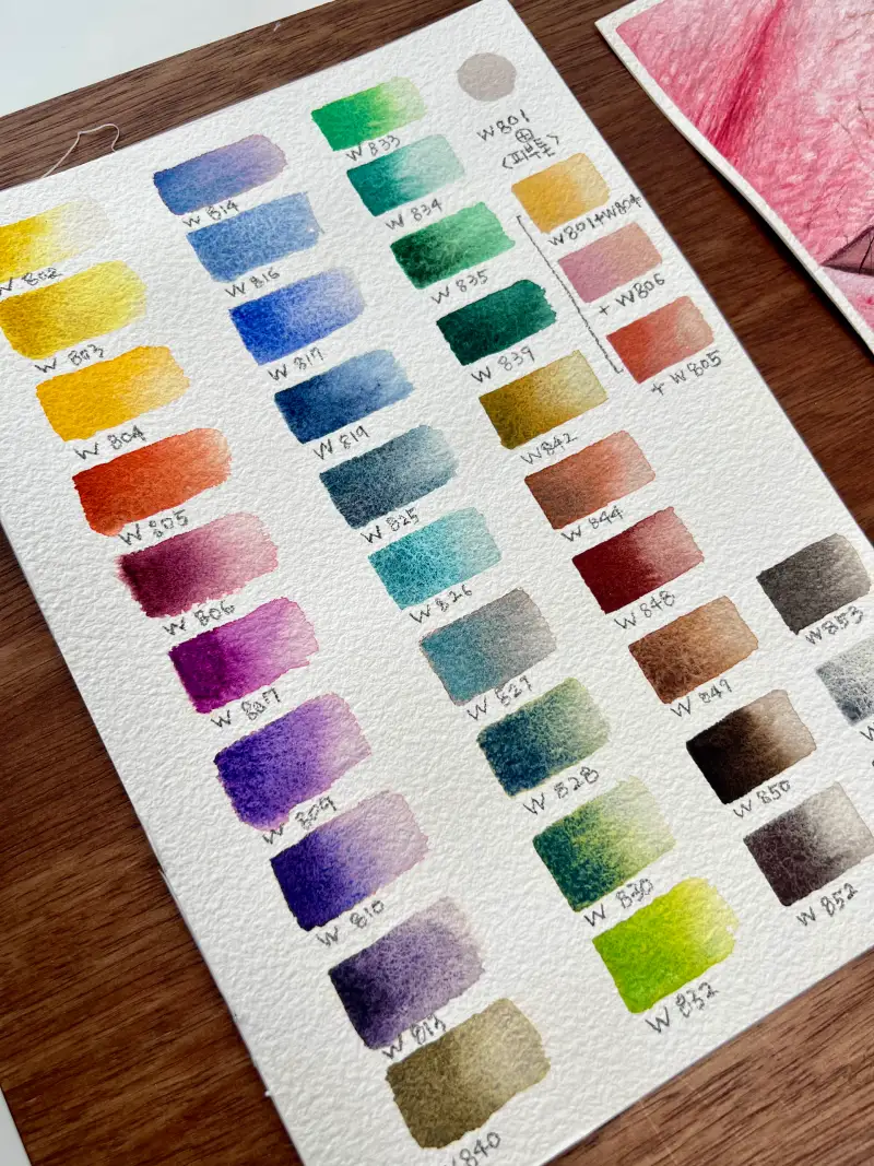 미젤로 수채화물감은 화실에서도 즐겨 사용하는 브랜드인데, 발색이 좋아 늘 만족하며 쓰고 있었어요.