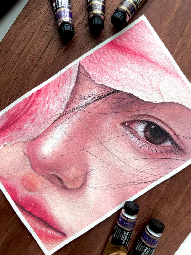미젤로 투톤 그래뉼레이션 수채화물감으로 인물화 그리기