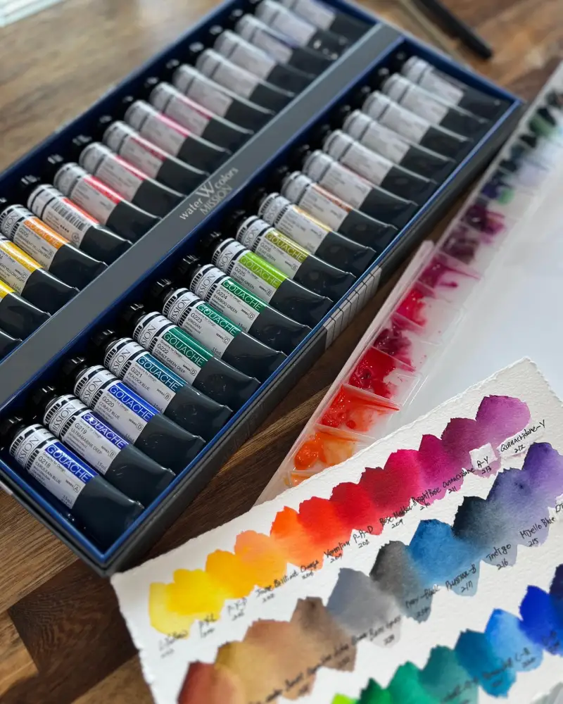 미젤로의 과슈는 색이 깊고 섞임이 좋습니다.
