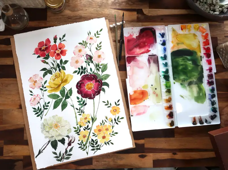 파렛트 표면과 수채화 용지에 채색 후 색 차이가 적다는 것입니다. 그리고 매우 가볍습니다.