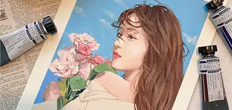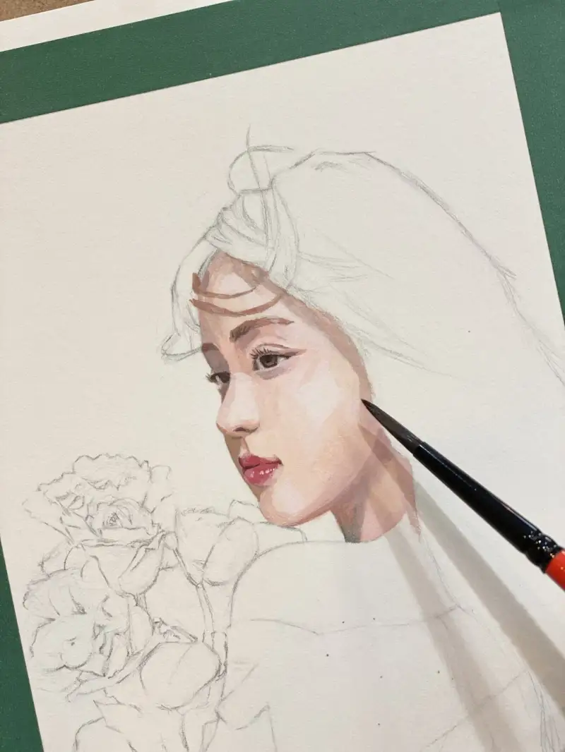 미젤로 티타늄 과슈로 그린 인물화