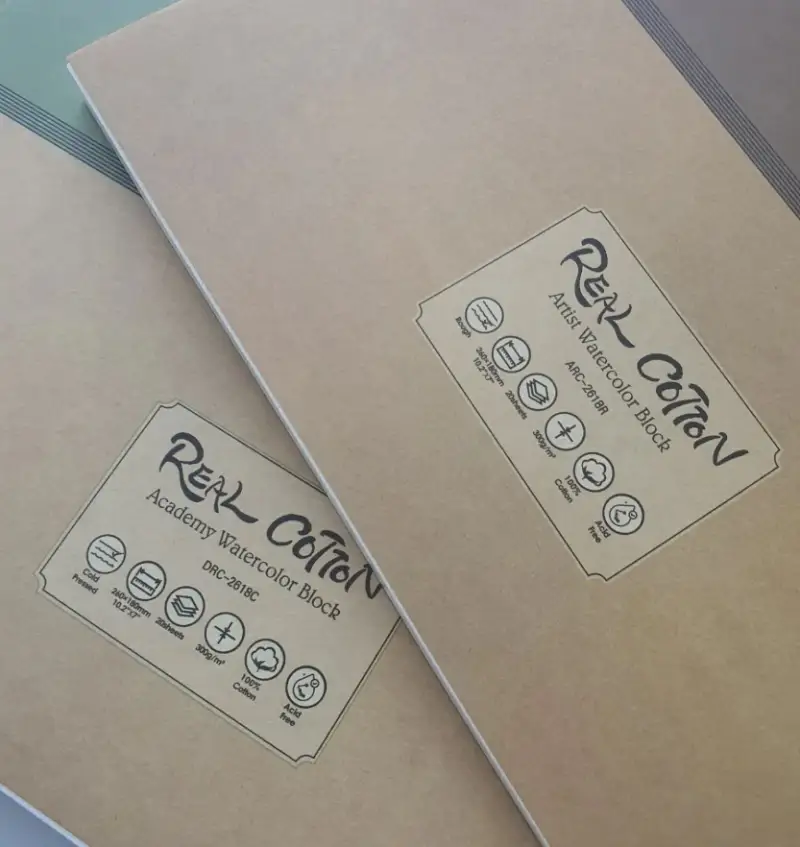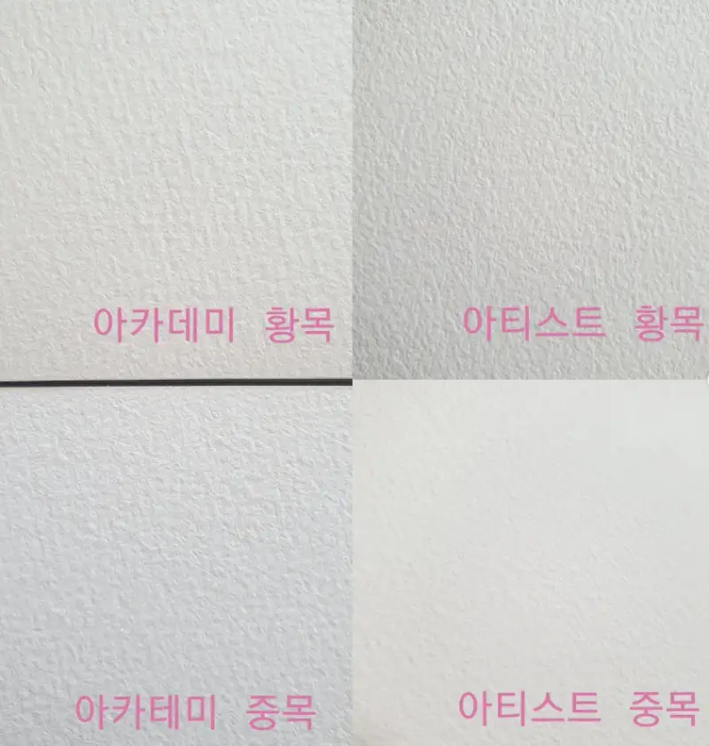 리얼코튼 아티스트와 리얼코튼 아카데미를 놓고 종이의 표면을 비교해 봤을때