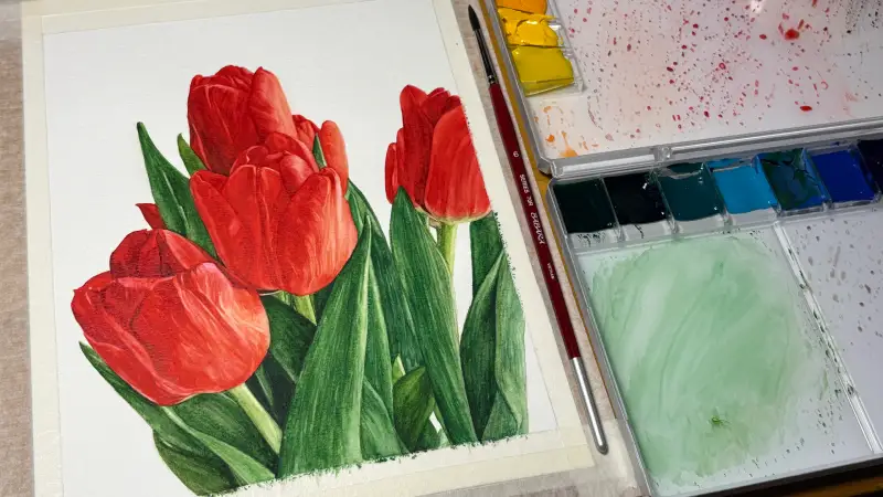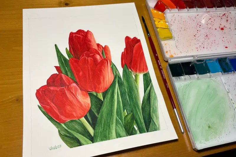 빨간 튤립을 그려봤어요!