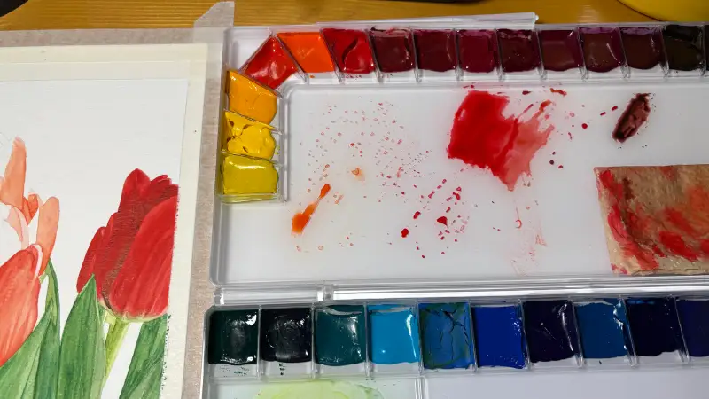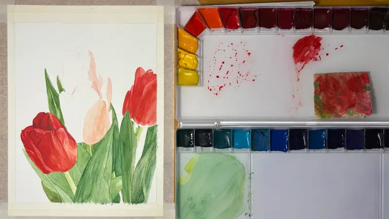줄기와 잎사귀 부분은 오랜만에 조색 공부를 하는 기분으로 열심히 하나하나 색을 만들어가며 그려나갑니다