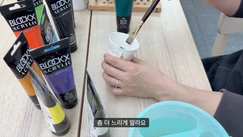 블록스 아크릴 물감: 타사 제품과 비교했을 때 안료의 농도가 높은 느낌이였습니다. 보통 헤비바디 라인에서 느낄수 있는 질감인데, 블록스는 기본라인에서 이정도 질감이라면 첨가물보다 안료의 비중이 높은 것 같습니다