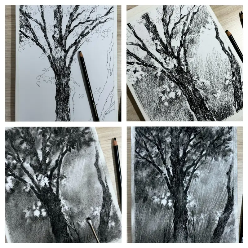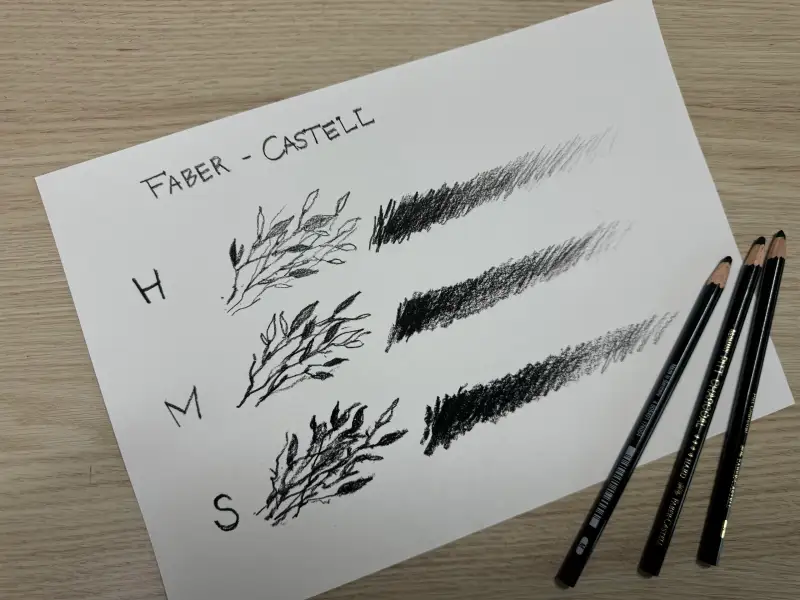 Hard - 단단하고 가장 옅고 선을 그을 때 뻑뻑한 느낌이 있어요. 마지막 세밀한 나뭇가지 묘사할 때 좋았어요.