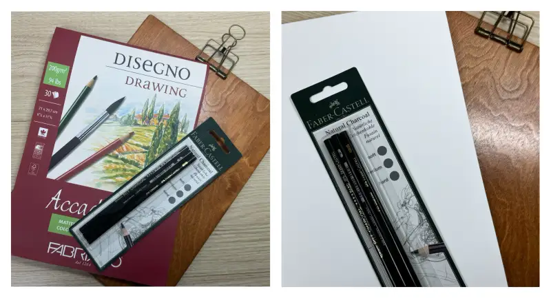 천연 목탄은 잿빛을 띤 색상이 종이 위에 부드럽게 사용되고 쉽게 문지르고 수정할 수 있어요. 여러 번 덧칠할 수 있는 장점까지~ 세계에서 가장 오래된 스케치 및 드로잉재료로 사랑받고 있어요.