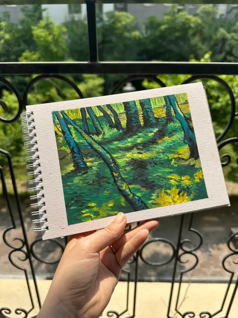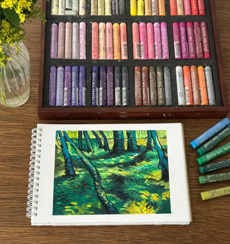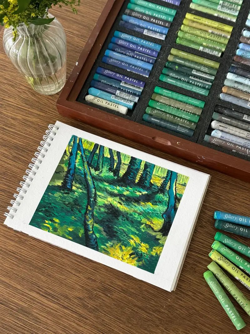 이번에는 문교 소프트오일파스텔 72색으로 반고흐의 작품 숲속을 모작해보았습니다:) 푸르른 색감과 깊고 진한 녹색을 마음껏 써서 즐겁게 그려보았는데요🌳