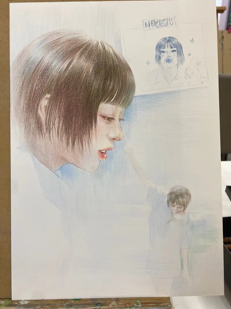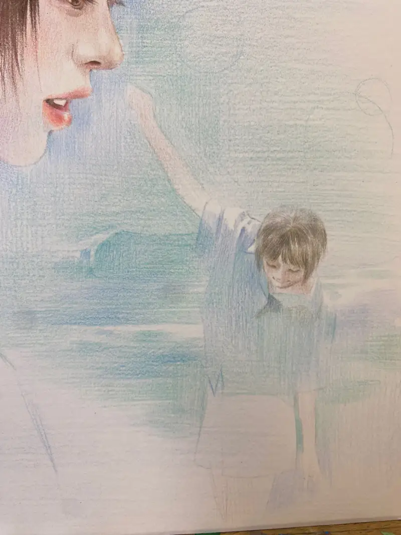 다만 아쉬운 점이라면 프리즈마에 비해서 색연필 심이 자체가 조금 물러서 인지 선이 깨끗하고 명료하게 나오지 않는다는 점인데요. 그래서 인지 제 평소 작업에 비해서 거친것을 볼 수 있었어요.