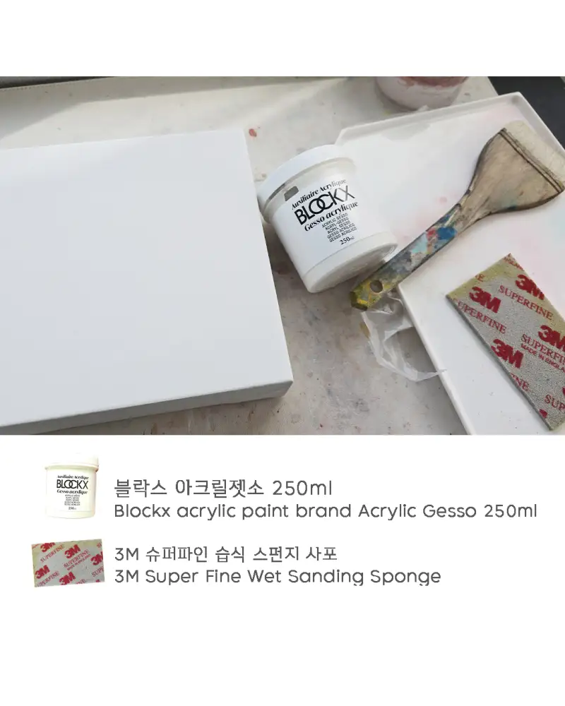 블락스 젯소를 칠한 뒤 3M 습식 사포로 잘 갈아내면