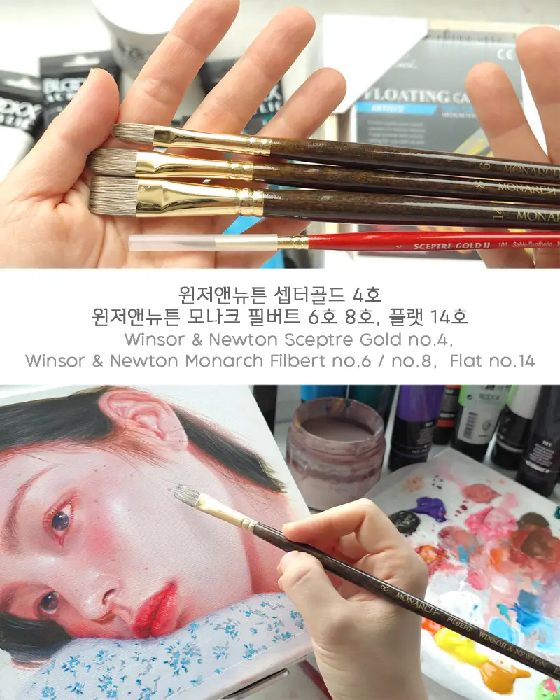 같이 사용한 윈저앤뉴튼의 모나크 브러쉬는 이미 잘 쓰던 붓인데요.