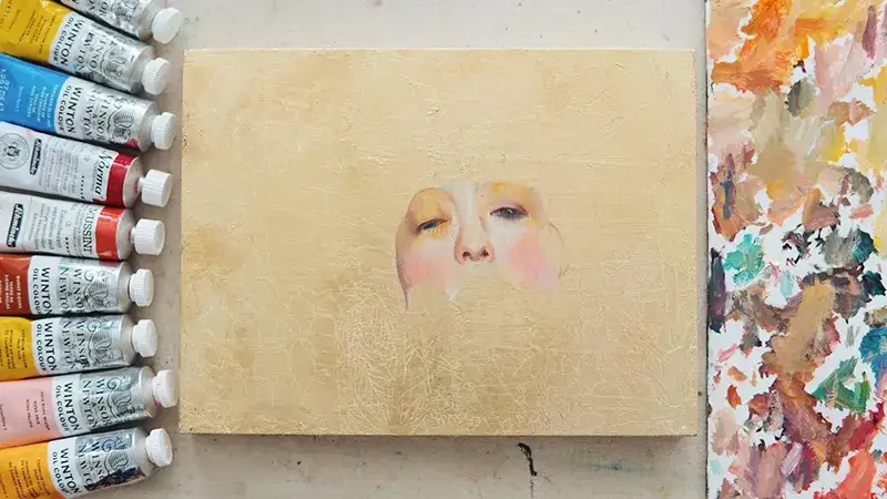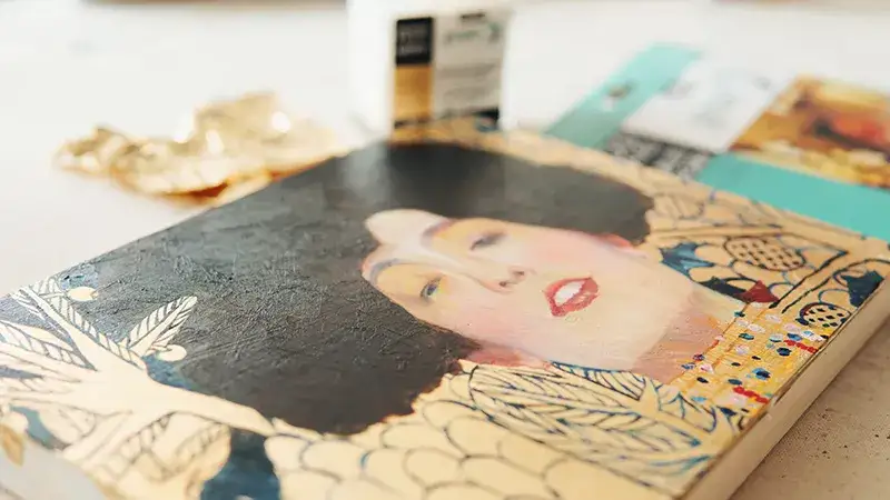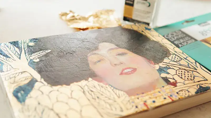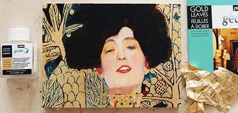 금박만 붙이고 끝내기가 아쉬워서 유화물감으로 금박을 올린 판넬 위에 클림트의 유디트를 그려 보았어요.