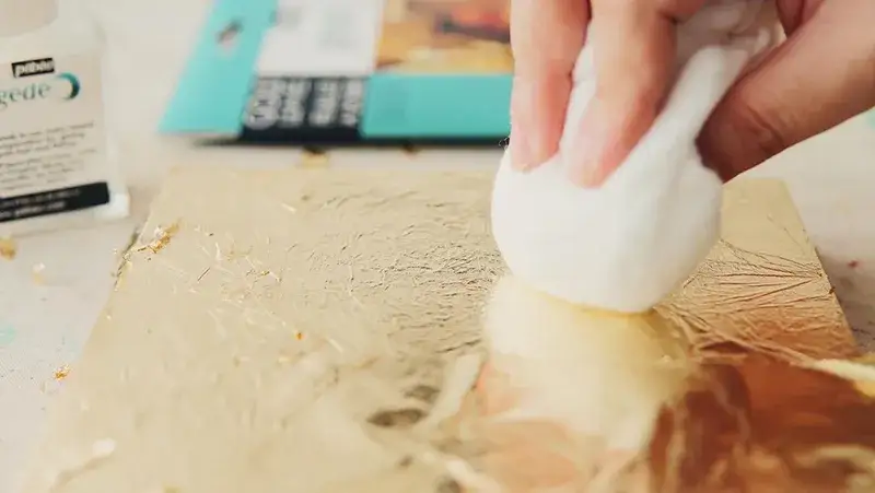 접착제의 물기가 아직 맺혀있거나 덜 건조되었을 때는 금박이 자칫하다 찢어지기도 하고 주름이 잘 생기기 때문이에요.