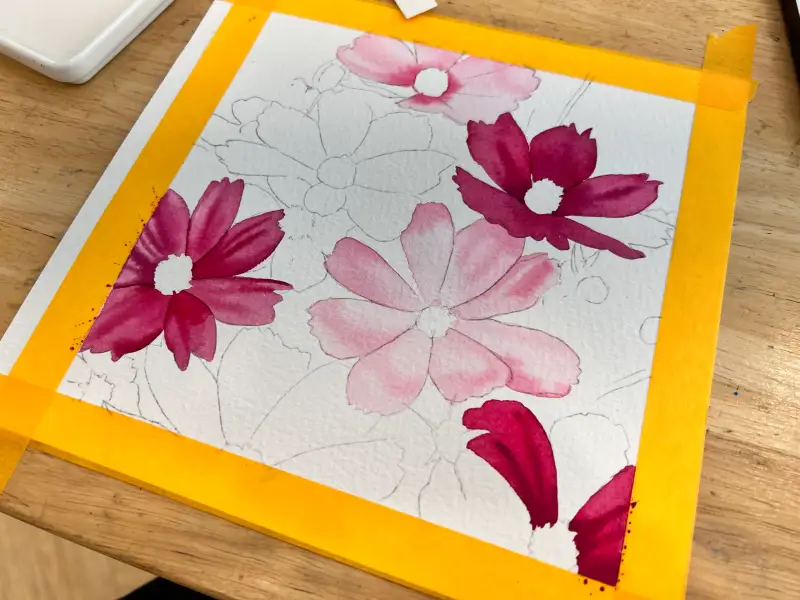 산도스 워터포드 황목에 코스모스 그리기