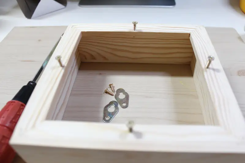 우선 고정만 되도록 나사못을 넣어준후, 그림을 앞쪽에서 넣고 고정을 해둔 나사를 돌려줍니다.