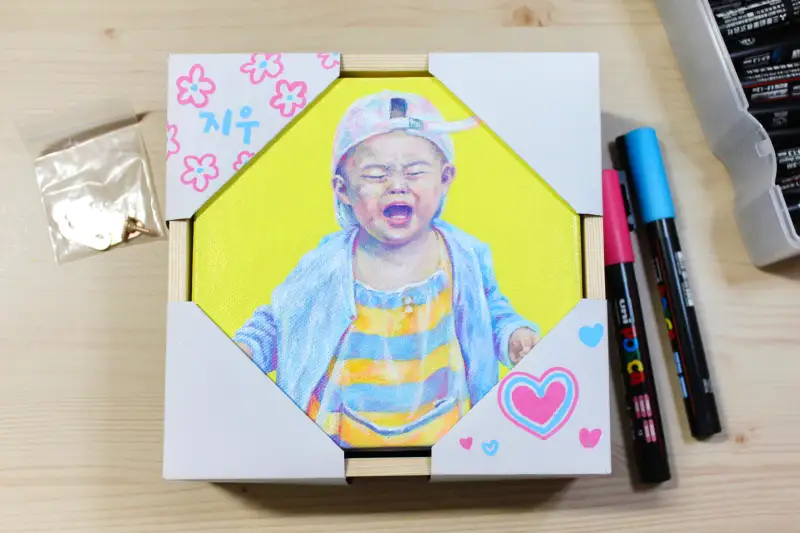 오늘은 '피닉스 캔버스 프레임세트'에 선물용 그림을 그려봤습니다.