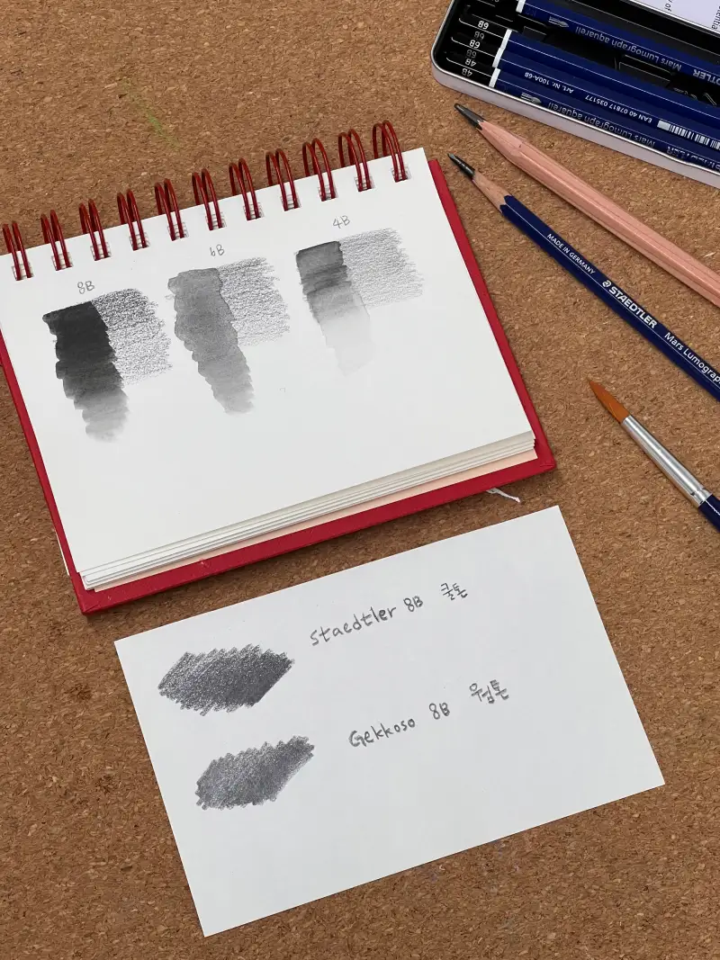 스테들러 마스 루모그라프 연필세트와 겟코소 점보연필 8B 입니다.