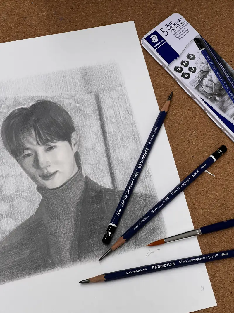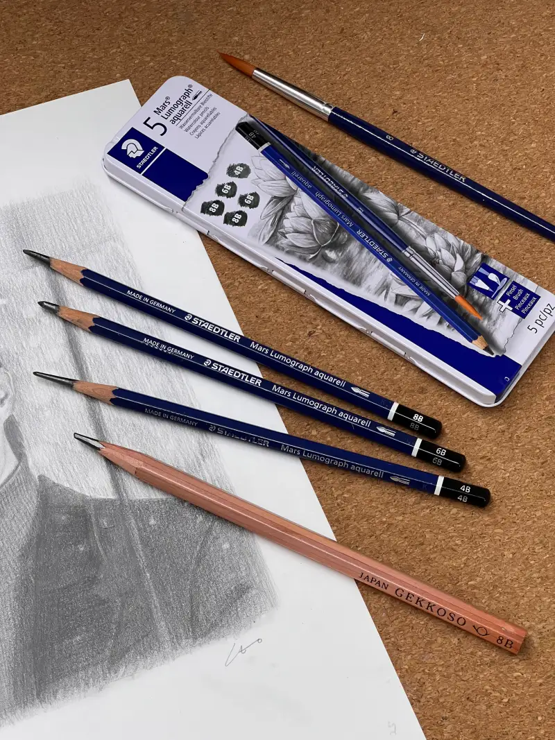 스테들러 마스 루모그라프에는 '붓 하나, 4B 한자루 6B 두자루 8B 두자루' 로 구성이 되어 있습니다.