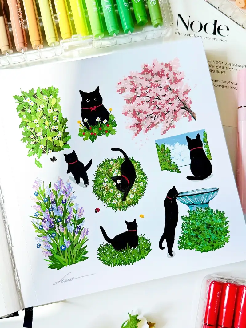 그리고 드로잉 패드로는 산돌 마카패드를 사용해서 그려봤는데 종이결이 매끈하고 부드러워서 마카펜을 사용하기에 너무 편안했고요. 종이뒤로 종이를 덧대지않아도 비침이 없기때문에 안심하고 슥슥 그어서 그릴 수 있어요😃