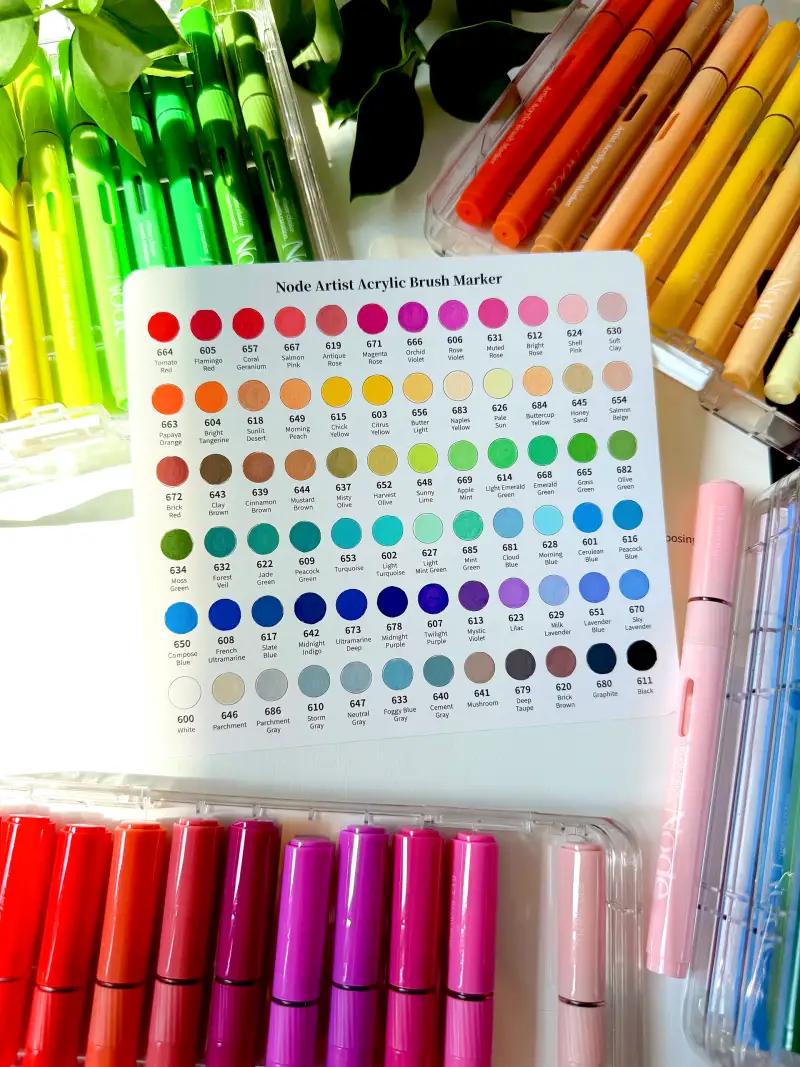 컬러들을 보시면 정말 하나도 빼고싶지 않은 컬러들로 구성되어있어요! 마카펜의 특성상 색상을 혼합하기 어려워서 최대한 다양한 색들을 가지고 있어야 그림을 그릴 때 더 풍성한 느낌으로 그릴 수 있는데, 노드 아크릴 브러쉬 마카펜은 선명하고 밝은 컬러부터 차분한 스킨톤, 무채색 라인까지 다양한 컬러들로 구성되어 있습니다!