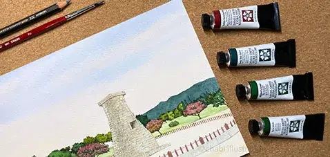 초록의 깊은 컬러감을 다니엘스미스 수채화 물감으로 표현했구요