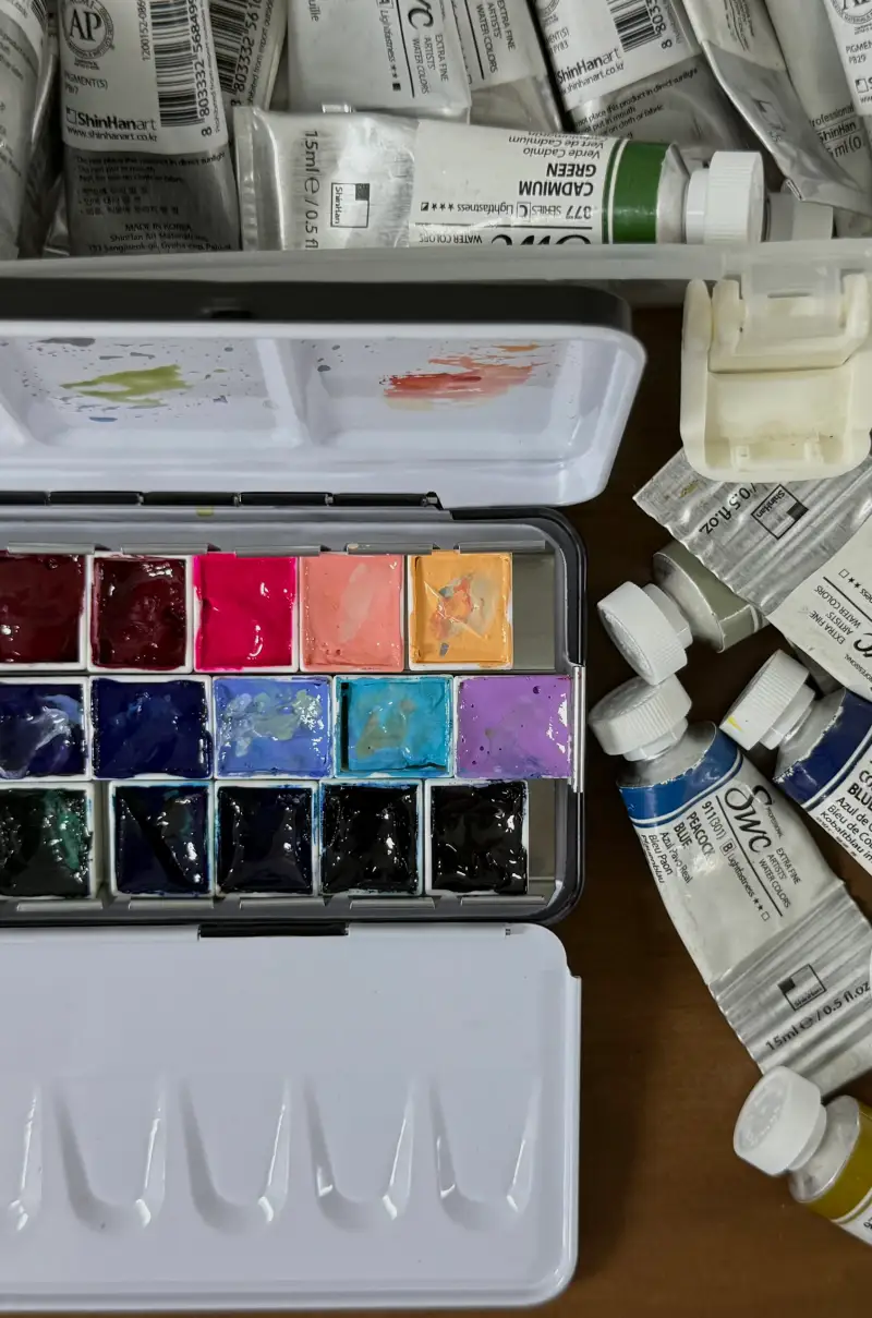 수채화 물감을 과슈처럼 사용할 수 있어요.