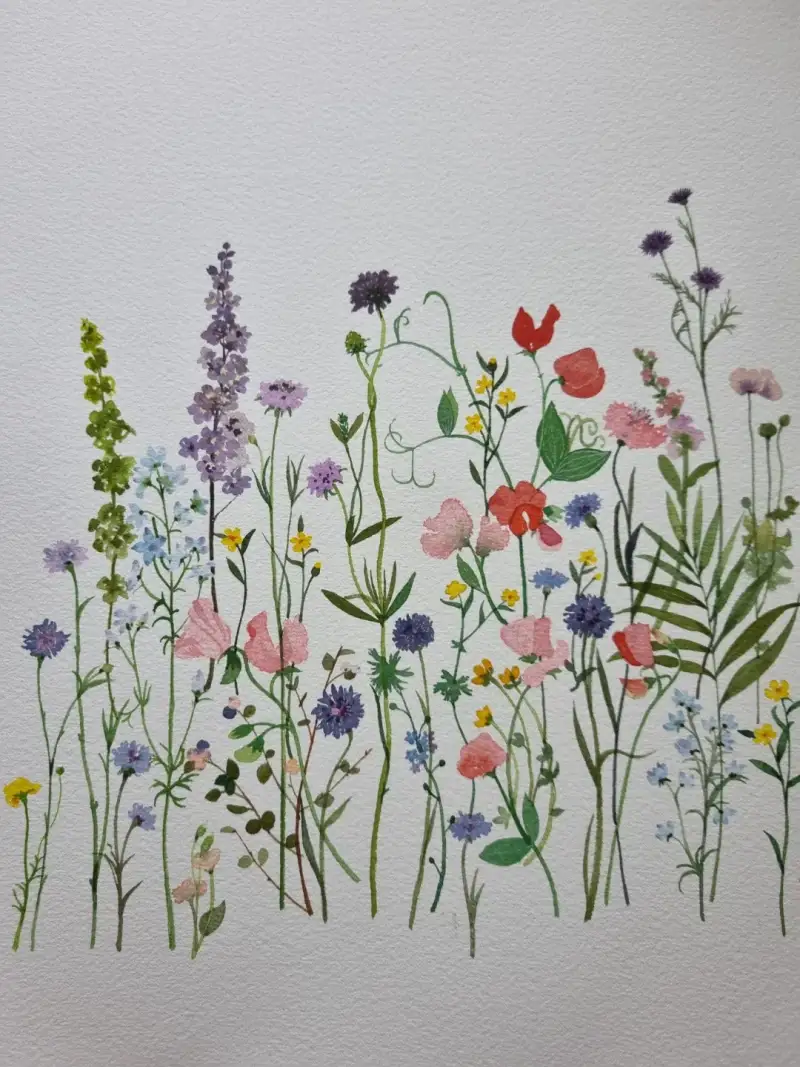 이름 모를 야생화들을 나란히 사이 사이 그리는 작업을 해 보았습니다.
