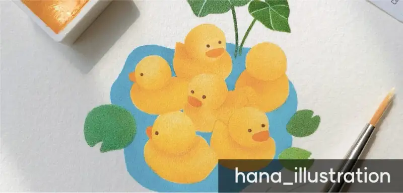 쉬민케 호라담 고체물감으로 복작복작한 오리들이 가득한 연못을 그려보았습니다🐤