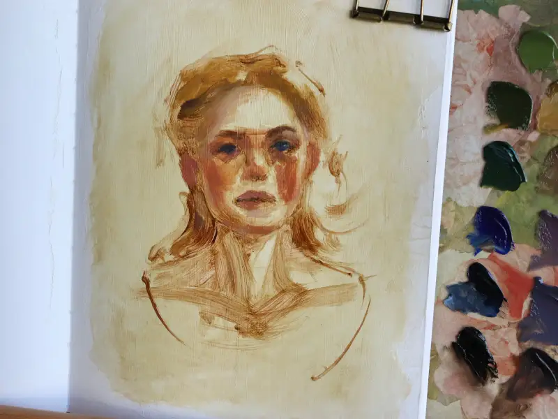 이럴 때는 주로 월넛 오일이나 전용 미디엄을 얇게 펴발라 다시 색이 살아난 상태에서 그릴 수 있는데 이 과정을 oiling out이라고 해요. 하지만 이미 밑칠이 잘못 되었다면 이 모든 게 의미가 없어요.