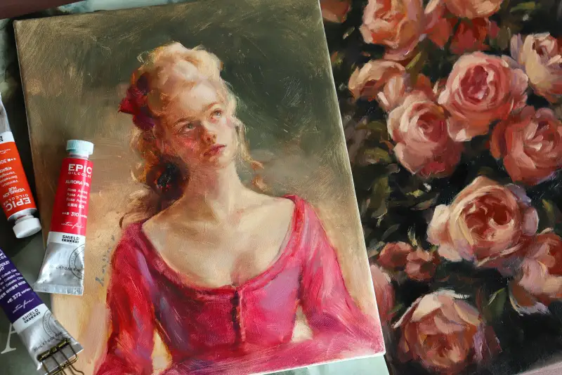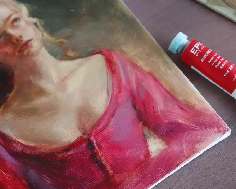 푸른빛 핑크인데 또 그렇게 차가운 느낌은 들지 않아서 인물화에서 레드 대신 사용했을 때 그 특유의 색감이 분위기를 만들어 주는 것 같아요.