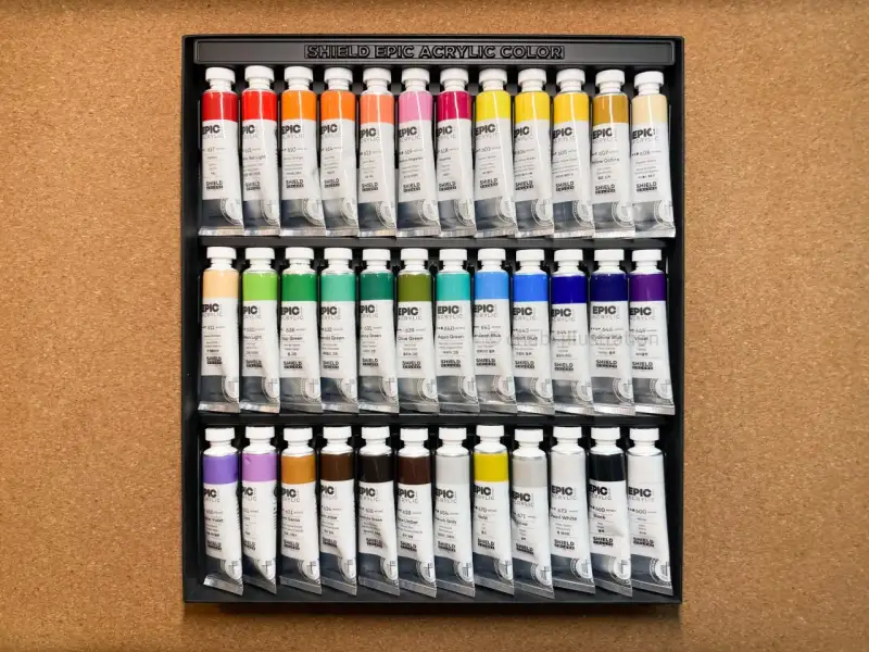 쉴드 아크릴 물감 에픽 36색 발색표