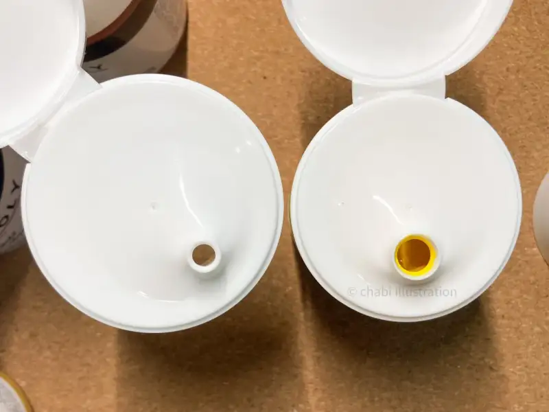 4. 모노폴리 아크릴물감의 케이스가 리뉴얼되었는데 여기서 한번 더! 사용자들의 의견을 받아 뚜껑에서 물감을 덜기 더 쉽게 입구 크기를 줄여 개선되었다고해요☺️