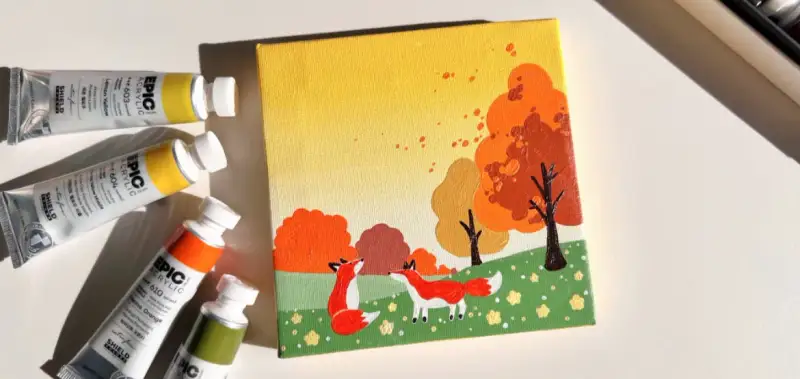 쉴드 에픽 아크릴물감으로 그린 가을 숲의 여우