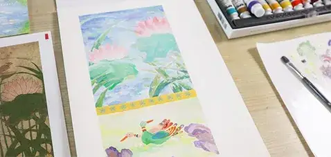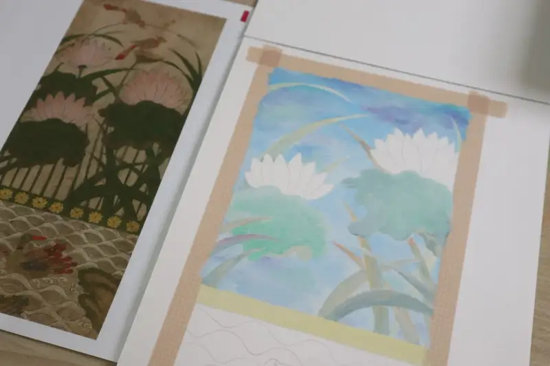 옛 민화 중 너무 귀여운 연꽃화조화가 있어서 그려보고 싶었어요~