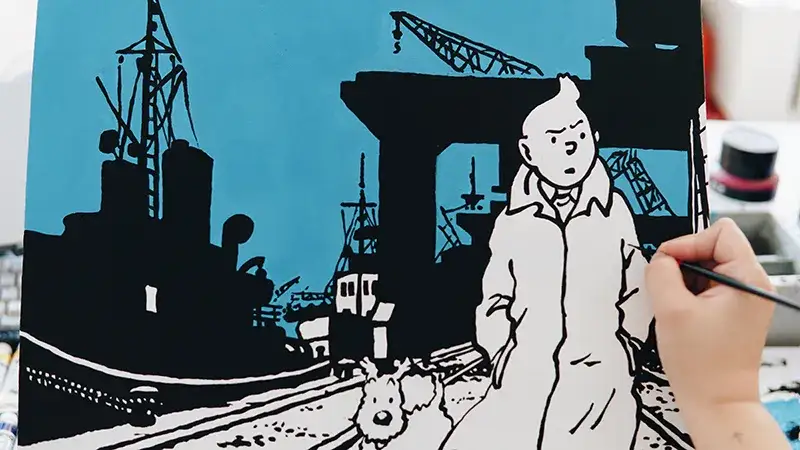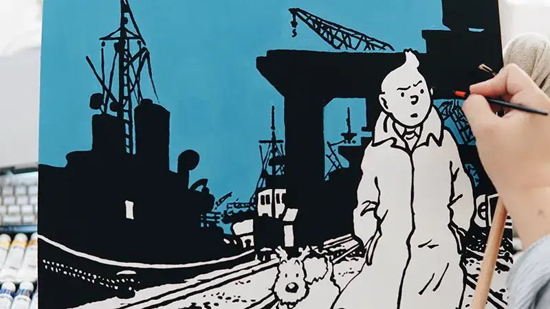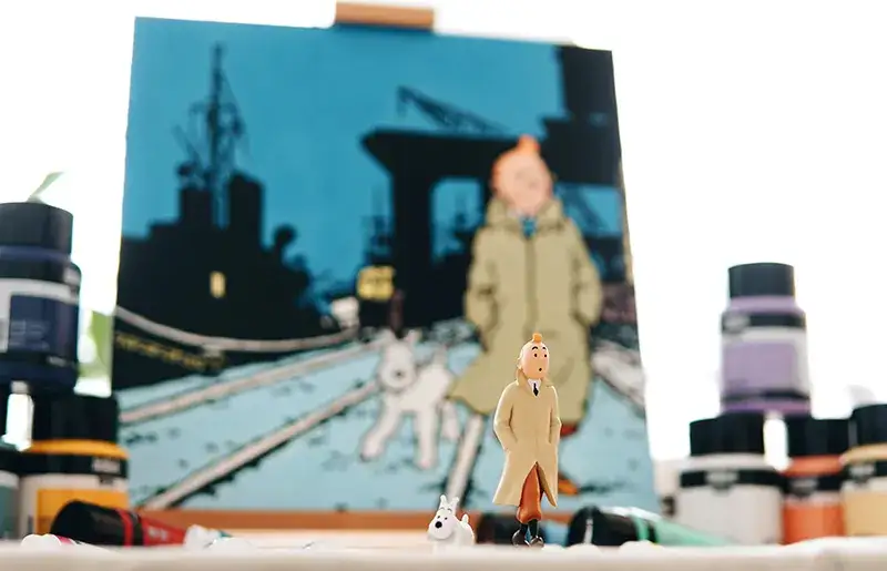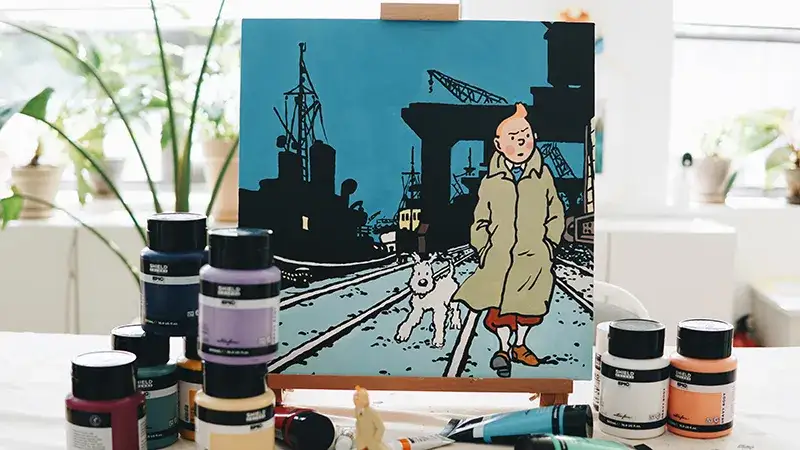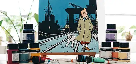 이 물감으로 저는 벨기에의 만화가 에르제(Hergé)가 만든 시리즈 땡땡의 모험(Les aventures de Tintin)의 이미지를 그려 보았어요.