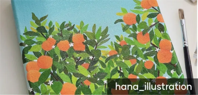 쉴드 에픽 아크릴 물감 36색으로 여름의 오렌지 나무를 그려보았습니다.