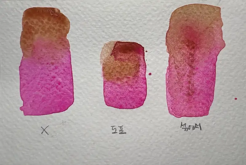 주의하실 점이 있다면 물 흡수가 강한 종이에선 발색이 떨어질 수도 있다네요.