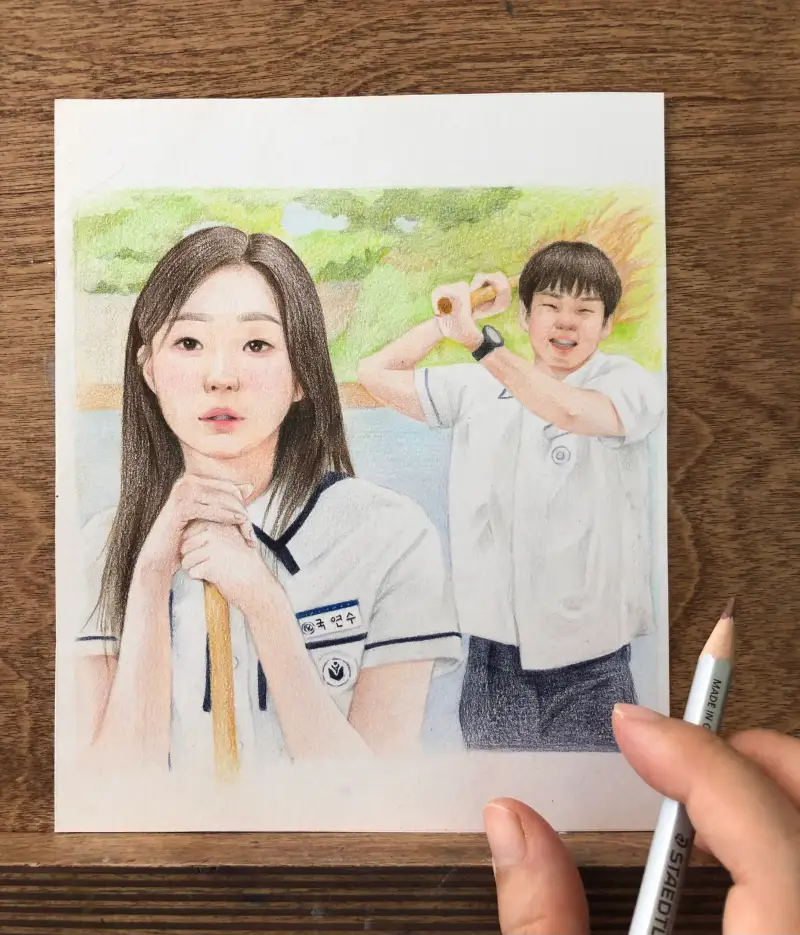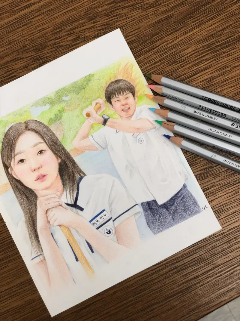 여름만 되면 생각나는 드라마 그해 우리는 한 장면을 스테들러 수채 색연필로 그려봤어요🫧🩵