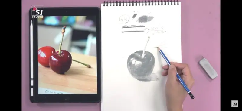 스테들러 연필의 특징을 알아보고 체리를 스케치와 소묘로 표현해 보았어요.